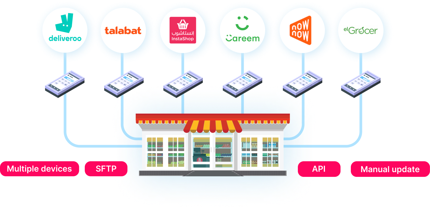 No more additional costs for manually updating products data on aggregators. Our integration replaces the tablets.