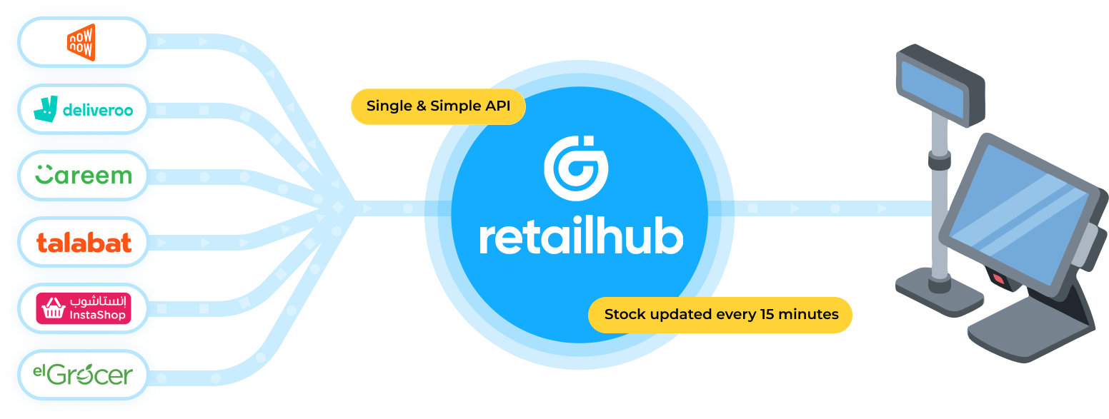 Integration with your POS system allows us to collect real time stocks and prices and send data to the aggregator without any manual work.